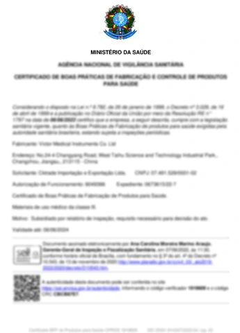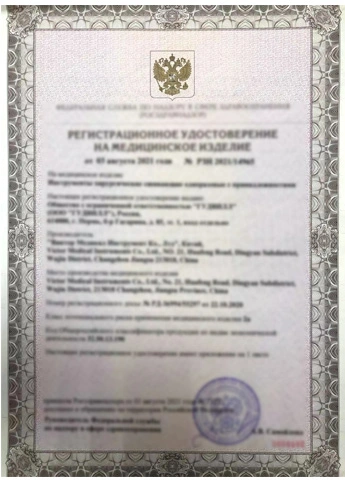 من خلال الامتثال الصارم للمتطلبات التشغيلية لأيزو 13485 ، جي بي ، و سي ، وأدوات جراحيةالتي تنتجها فيكتور الطبية تم اعتمادها على التوالي من قبل CFDA ، و US FDA ، و Brazil ANVISA ، و FDA الكورية ، تسجيل الهند ، تسجيل إيران ، المملكة العربية السعودية SFDA والإدارات ذات الصلة من الدول الأخرى.